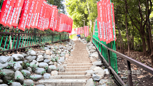男坂参道の左側には階段のない道があり女坂と呼ばれています。車も通りますのでこちらを通る時は気をつけてください。写真を撮り忘れてしまったので次回参拝する時は撮影して再投稿したいと思います。