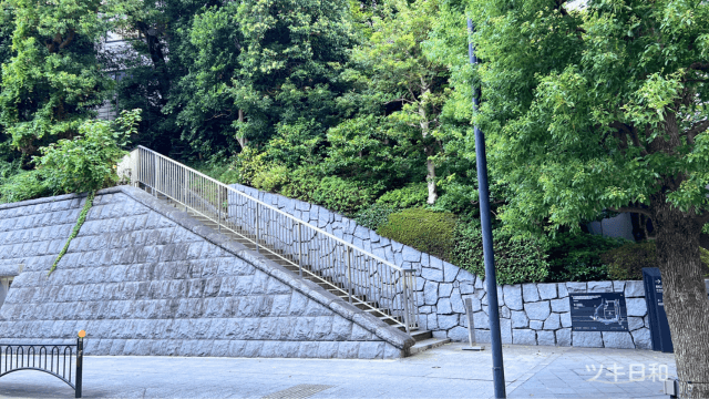 これは?不思議な階段を見つけました。階段を上がっていくと道が二股にわかれていてひとつは日枝神社方面でもう一つは女坂に合流できるようになっていました。日枝神社は入口は4つと言われていますがこちらをいれると5つですね。